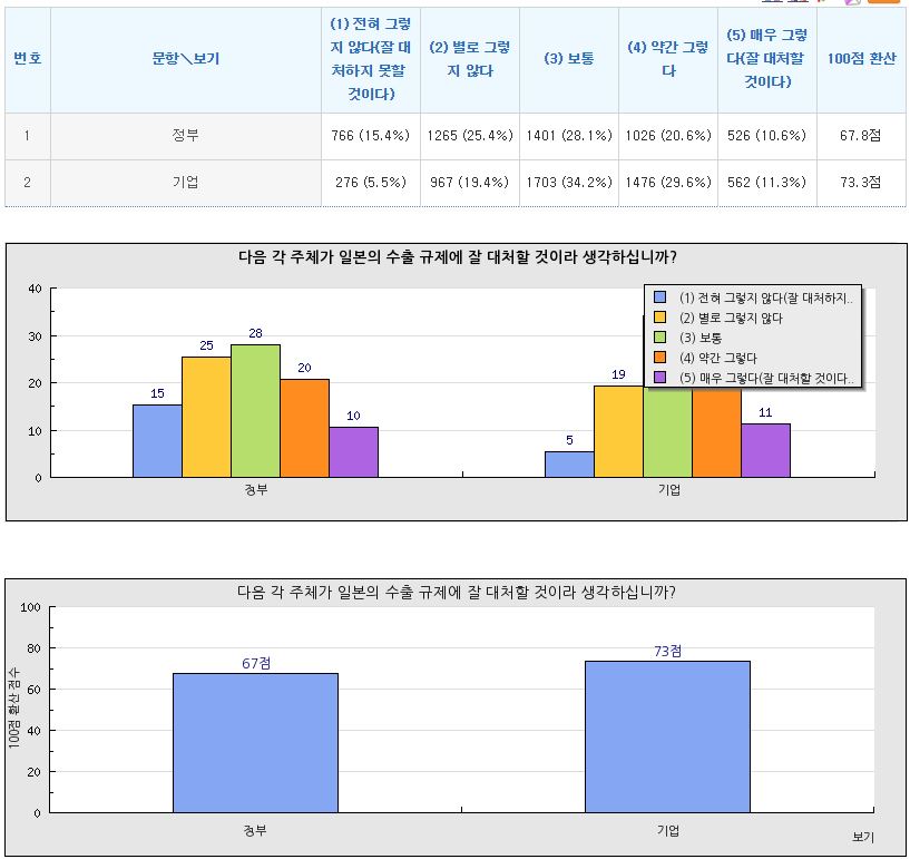 (다음 각 주체가 일본의 수출 규제에 잘 대처할 것이라 생각하십니까?)