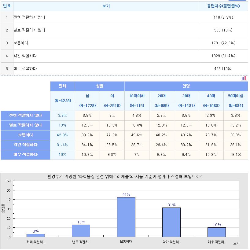 환경부가 지정한 '화학물질 관련 위해우려제품'의 제품 기준이 얼마나 적절해 보입니까?)