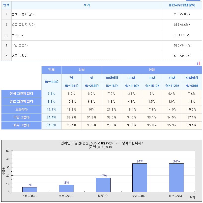 - 국민 10명 중 6-7명, 연예인이 공인이라고 생각(68.7%)