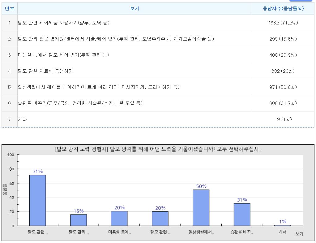1위) 탈모 관련 헤어제품 사용하기(샴푸, 토닉 등)(71.2%)