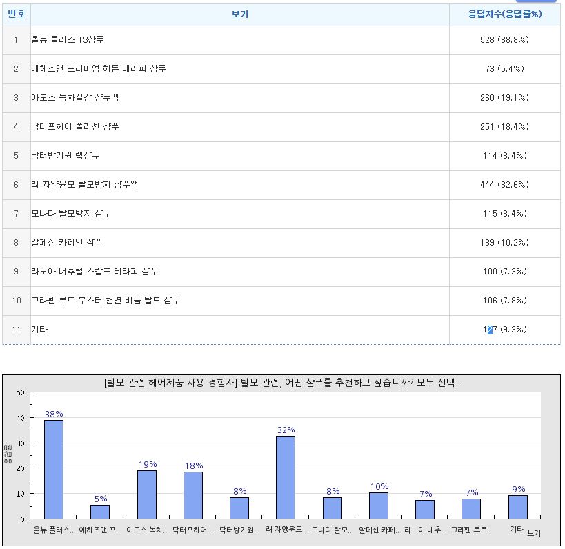 1위) 올뉴 플러스 TS 샴푸(38.8%)