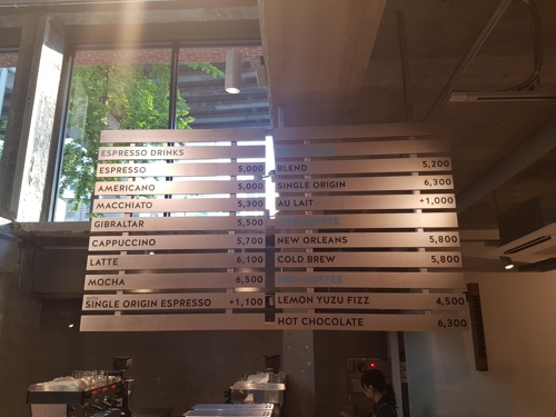 (블루보틀의 한국 가격은 에스프레소와 아메리카노 5천원, 라테는 6천100원입니다.