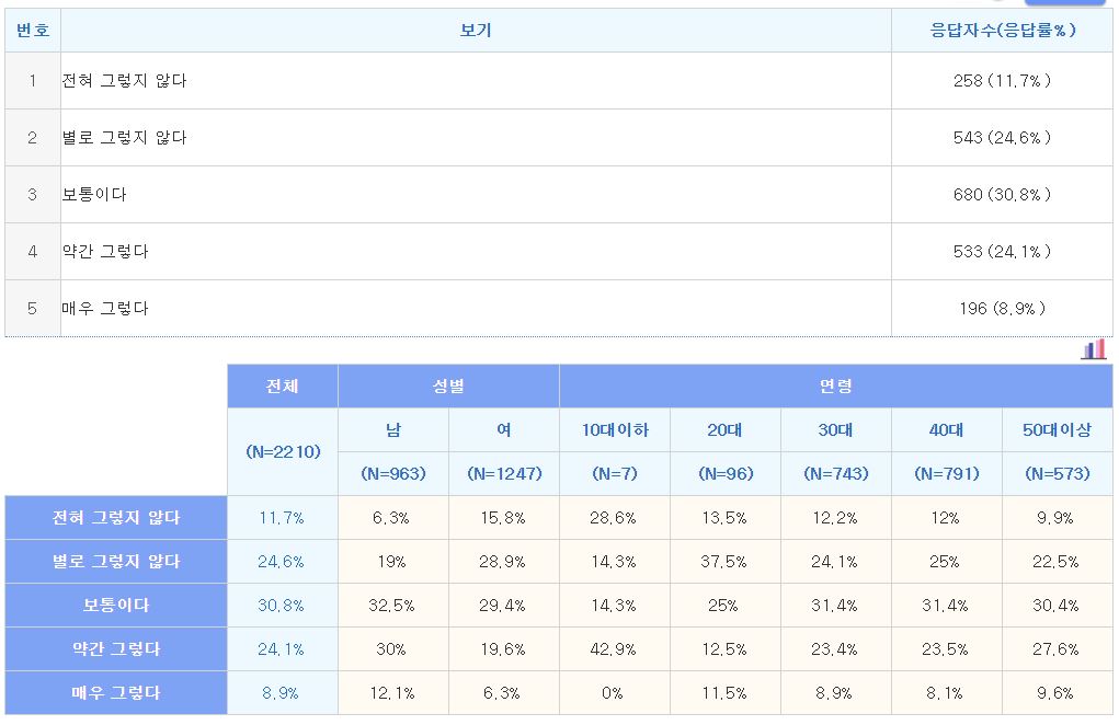 | [설문조사결과/여론조사결과] 당신의 사회적 관계는 어떤가요? (0) | 2019.06.14 |