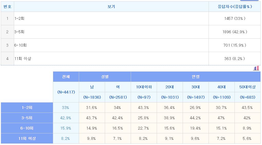 * 평균 연애 횟수: 3-5회(42.9%) 혹은 1-2회(33%)
