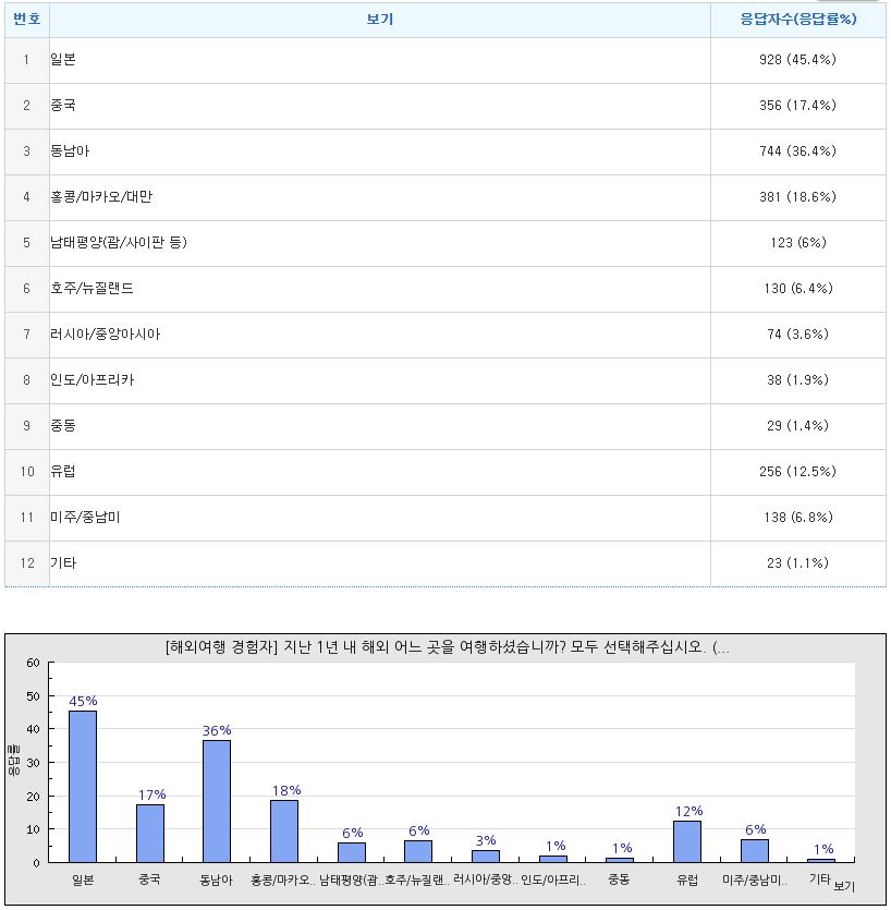 ([복수응답][해외여행 경험자] 지난 1년 내 해외 어느 곳을 여행하셨습니까? 모두 선택해주십시오. (복수응답 가능))