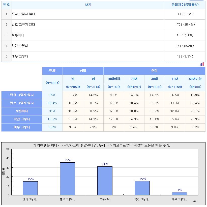 (해외여행을 하다가 사건/사고에 휘말린다면, 우리나라 외교부로부터 적절한 도움을 받을 수 있을 것 같습니까?)