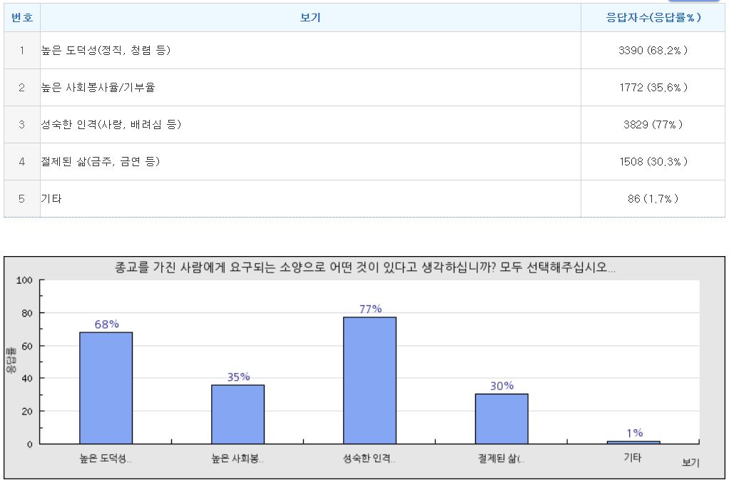 ([복수응답] 다음 종교에 대한 이미지는 어떠합니까?종교를 가진 사람에게 요구되는 소양으로 어떤 것이 있다고 생각하십니까? 모두 선택해주십시오. (복수응답 가능))