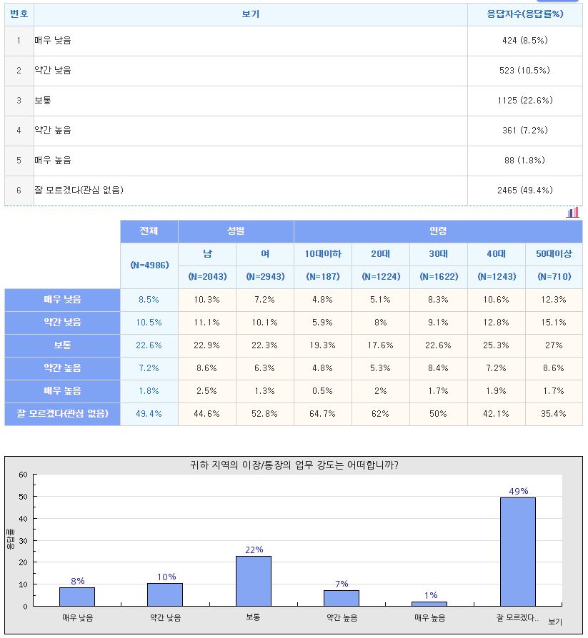 - 이장/통장이 지역 내 영향력이 높은지, 청렴한지, 업무 강도가 어떤지 잘 몰라(관심 없음)