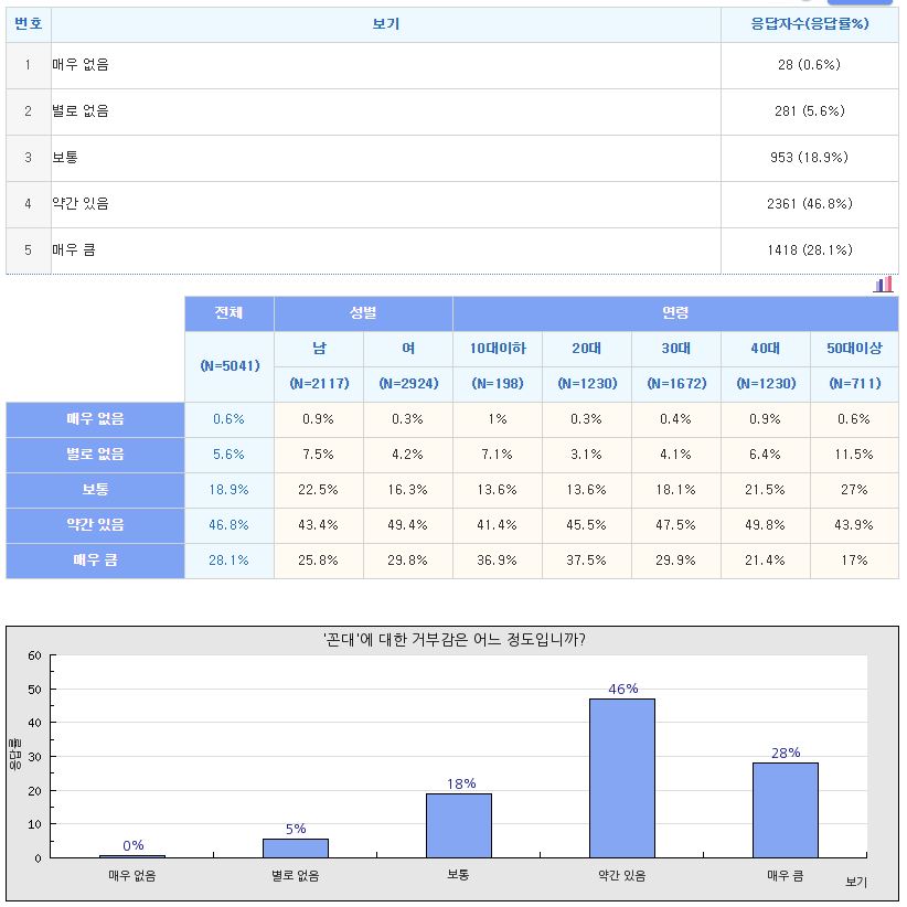 ('꼰대'에 대한 거부감은 어느 정도입니까?)