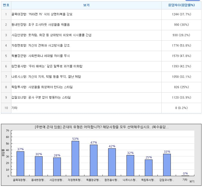 ([3순위선택] 가장 최악이라고 생각하는 꼰대의 유형은 무엇입니까? 최대 3개까지 선택해주십시오.)