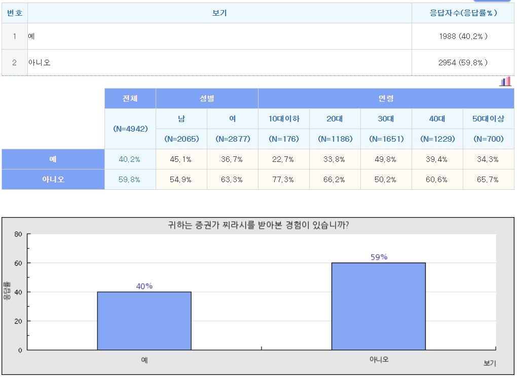 - 10명 중 4명, 증권가 찌라시를 받아본 적 있어(40.2%)