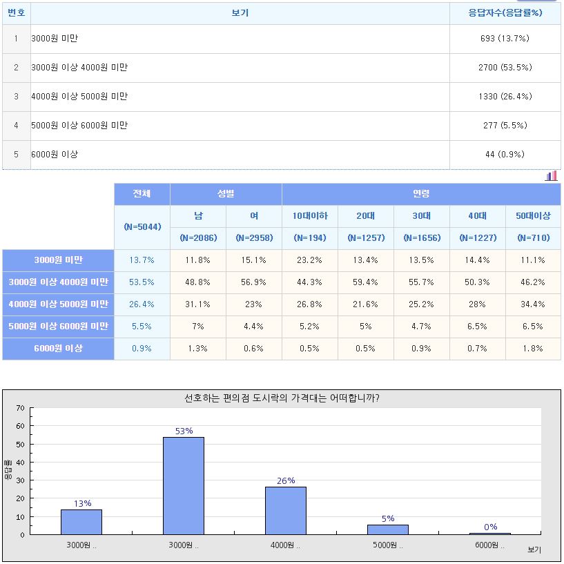 (선호하는 편의점 도시락의 가격대는 어떠합니까?)