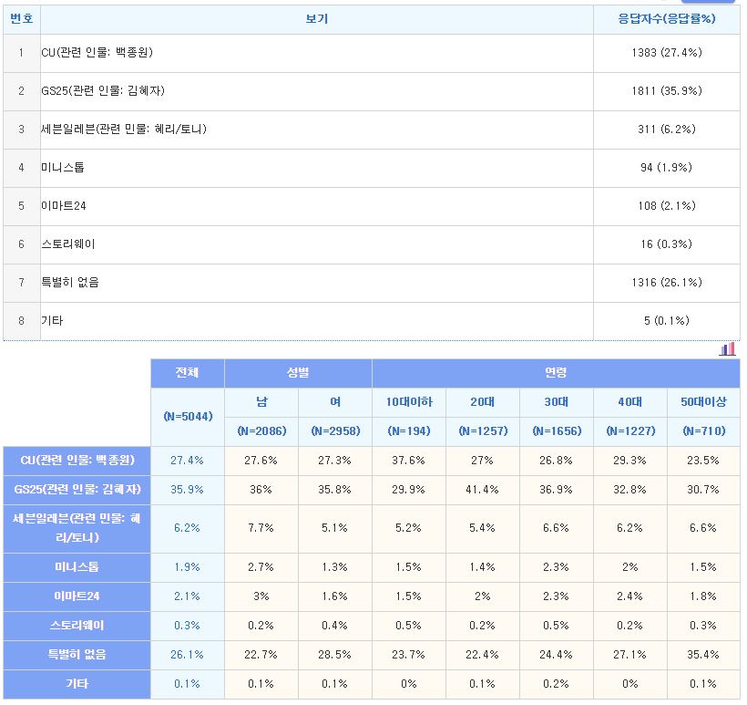 1위) GS25(관련 인물: 김혜자)(35.9%)
