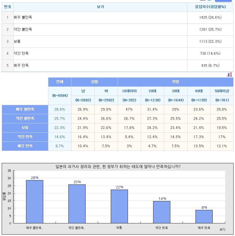 - 일본의 과거사 정리 관련, 현 정부의 태도에 54.3% 불만족, 23.3% 만족
