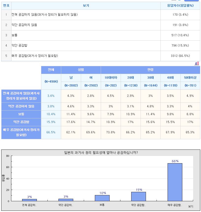 (일본의 과거사 정리 필요성에 얼마나 공감하십니까?)