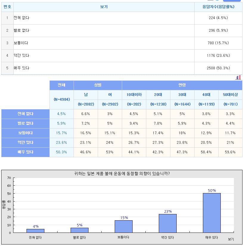 [설문조사결과/여론조사결과] 일본 제품 불매 운동, 참여하시겠습니까? 본문