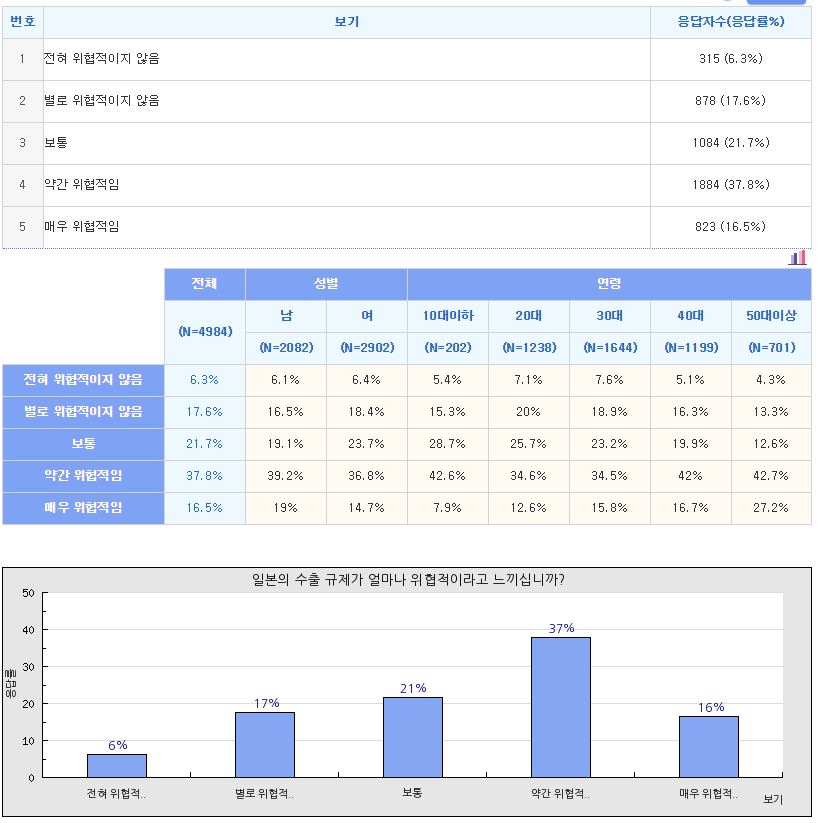| [설문조사결과/여론조사결과] 방사능으로부터 안전하십니까? (0) | 2019.09.06 |