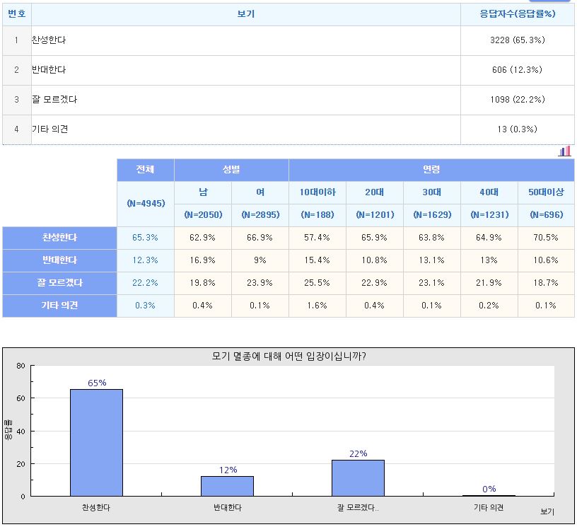 - 10명 중 6-7명, 모기 멸종에 찬성(65.3%)