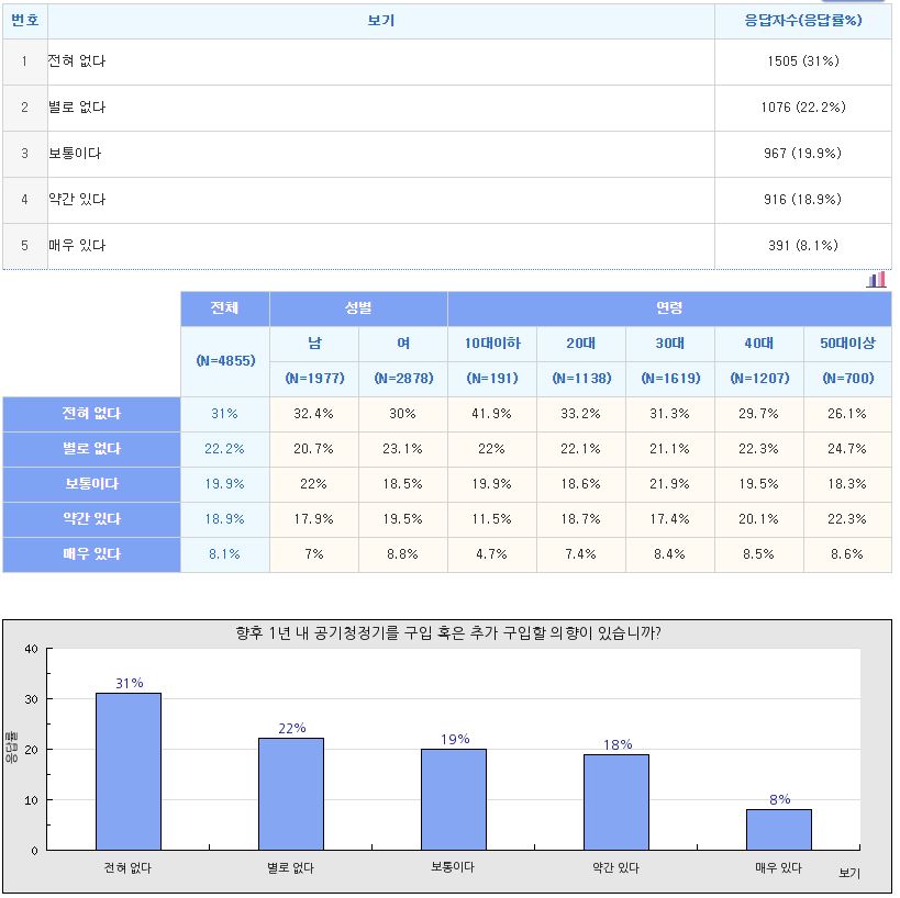(향후 1년 내 공기청정기를 구입 혹은 추가 구입할 의향이 있습니까?)