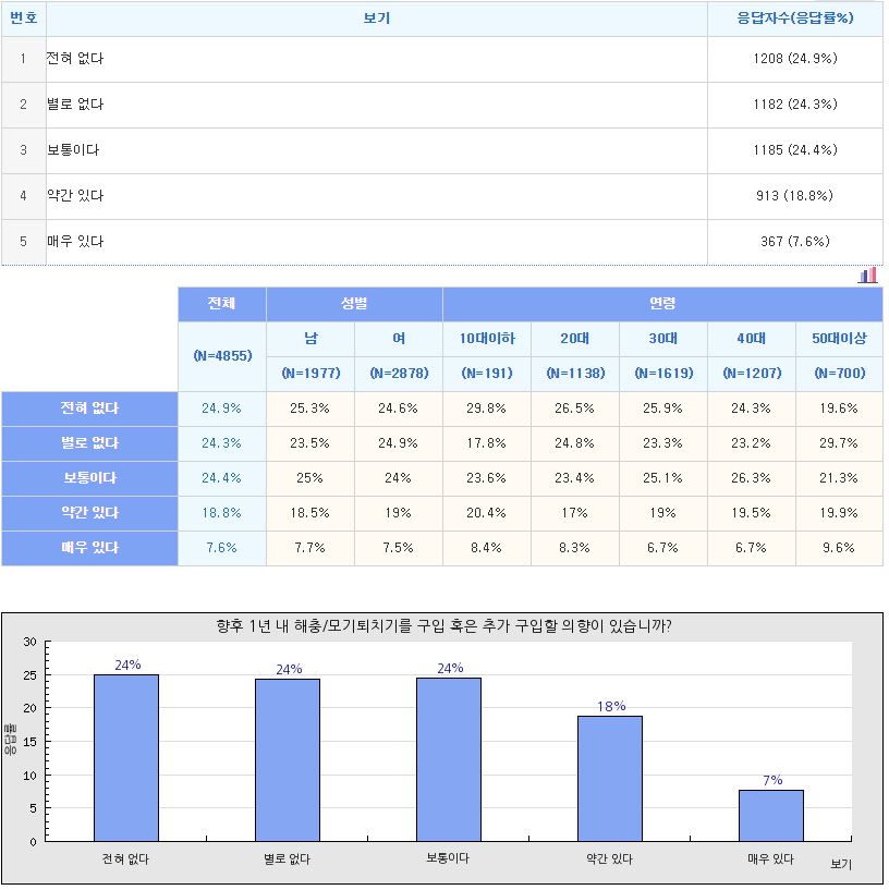 (향후 1년 내 해충/모기퇴치기를 구입 혹은 추가 구입할 의향이 있습니까?)