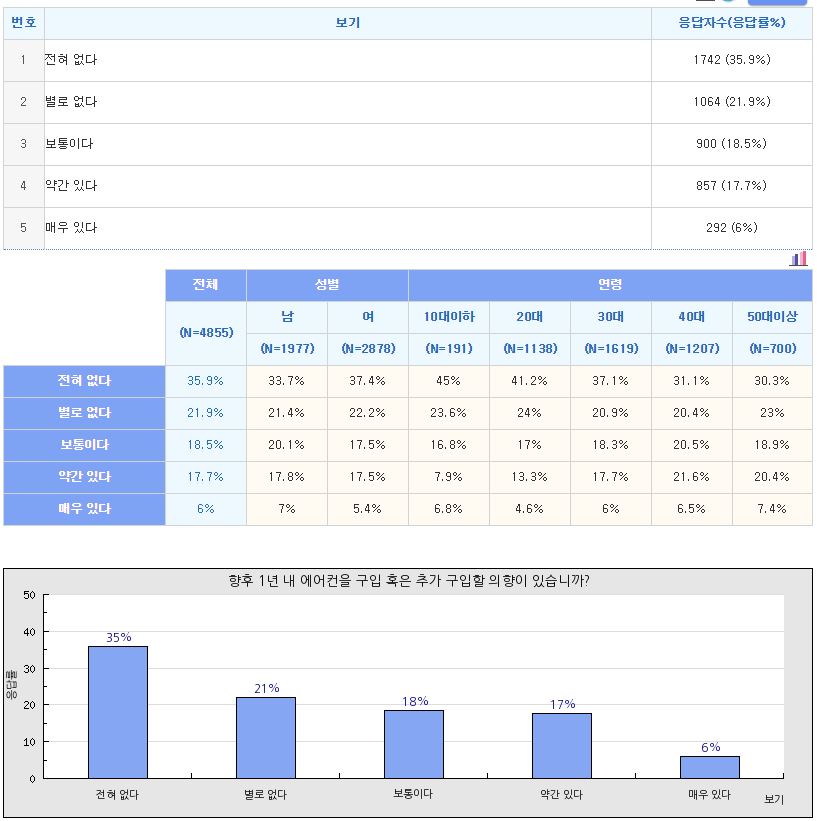 (향후 1년 내 에어컨을 구입 혹은 추가 구입할 의향이 있습니까?)