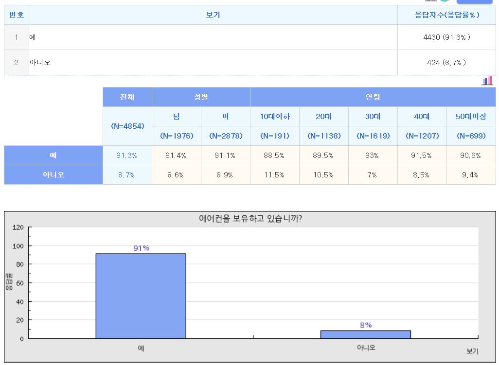 오늘은 다양한 여름 날씨 관련 가전제품의 보급률 및 구매 의향을 조사해보고자 합니다.