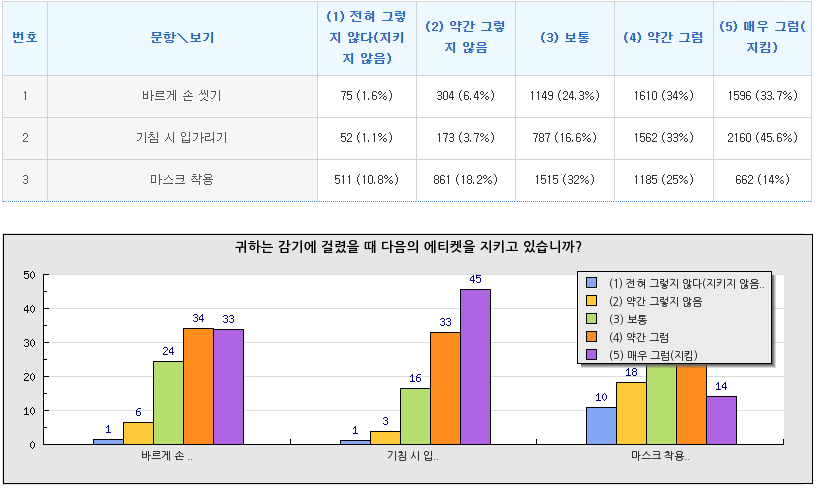 (귀하는 감기에 걸렸을 때 다음의 에티켓을 지키고 있습니까?)