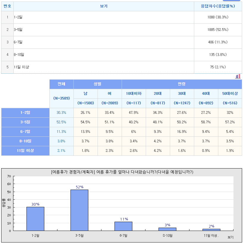([여름휴가 경험자/계획자] 여름 휴가를 얼마나 다녀왔습니까?(다녀올 예정입니까?))