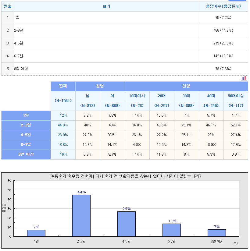 ([여름휴가 휴우증 경험자] 다시 휴가 전 생활리듬을 찾는데 얼마나 시간이 걸렸습니까?)