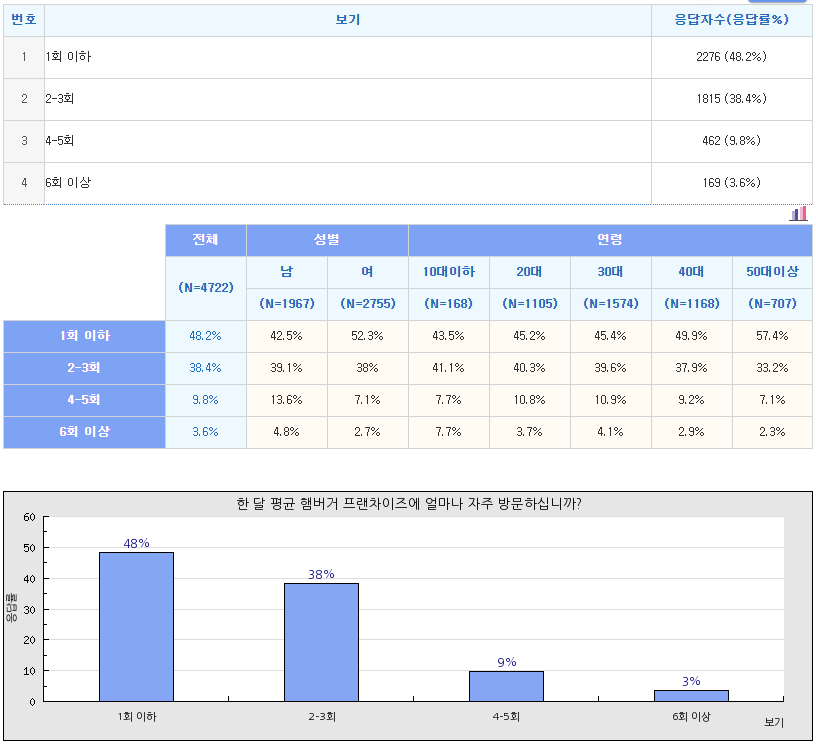 (한 달 평균 햄버거 프랜차이즈에 얼마나 자주 방문하십니까?)