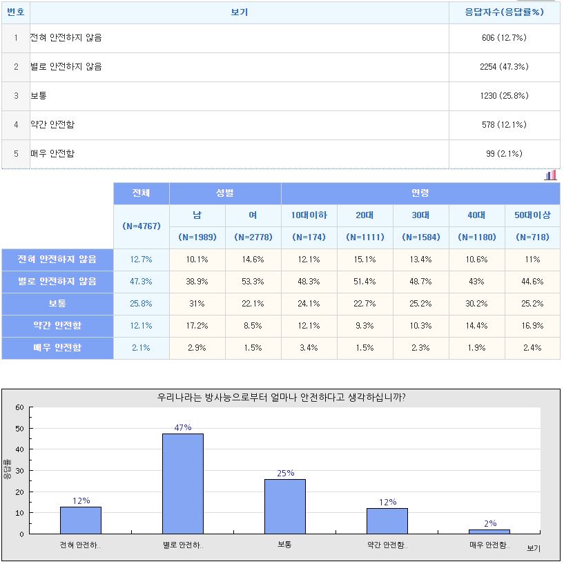 [설문조사결과/여론조사결과] 방사능으로부터 안전하십니까? 본문