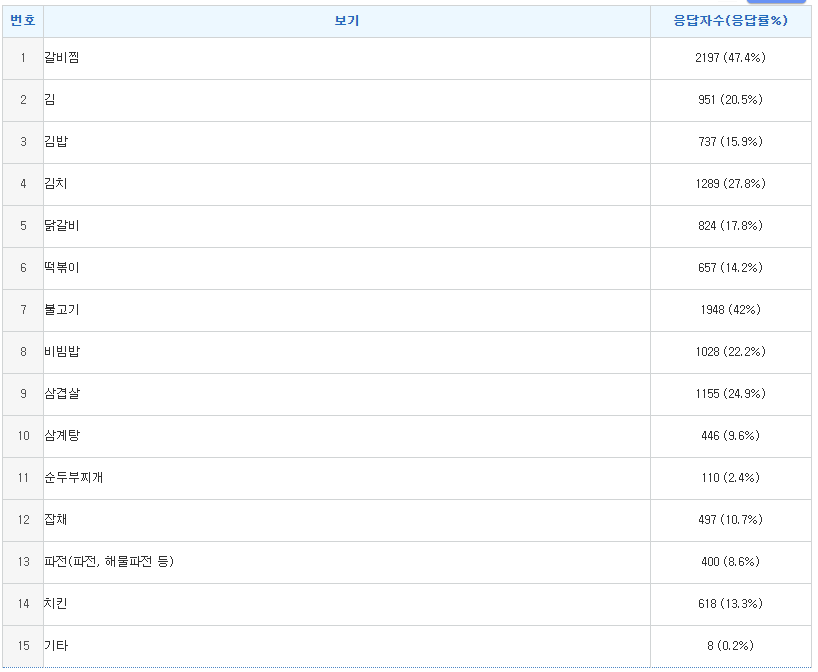 - 한국인 10명 중 7-8명, 김치 좋아한다(73.4%)