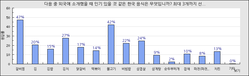 - 한국인이 뽑은, 외국에 소객하면 인기있을 것 같은 한국 음식은?