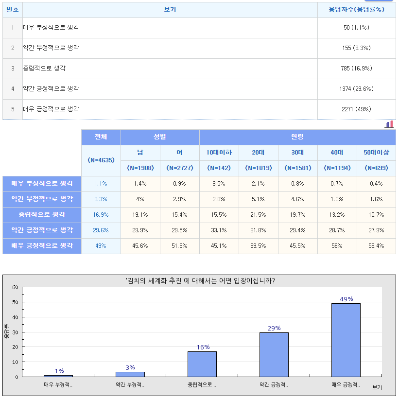 ('김치의 세계화 추진'에 대해서는 어떤 입장이십니까?)