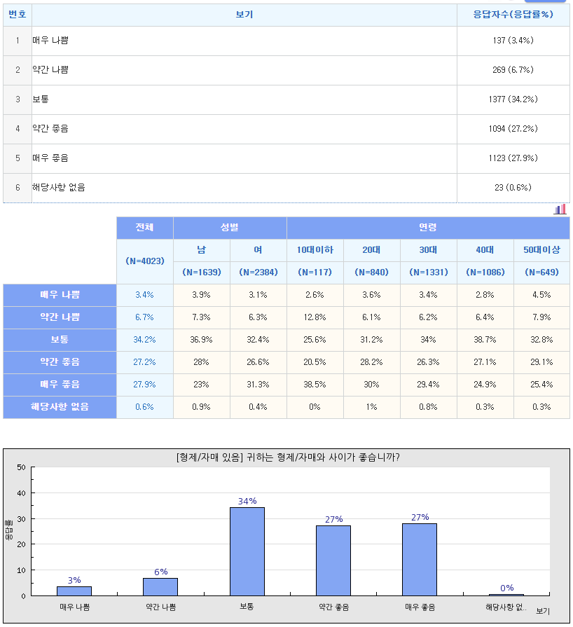 ([형제/자매 있음] 귀하는 형제/자매와 사이가 좋습니까?)