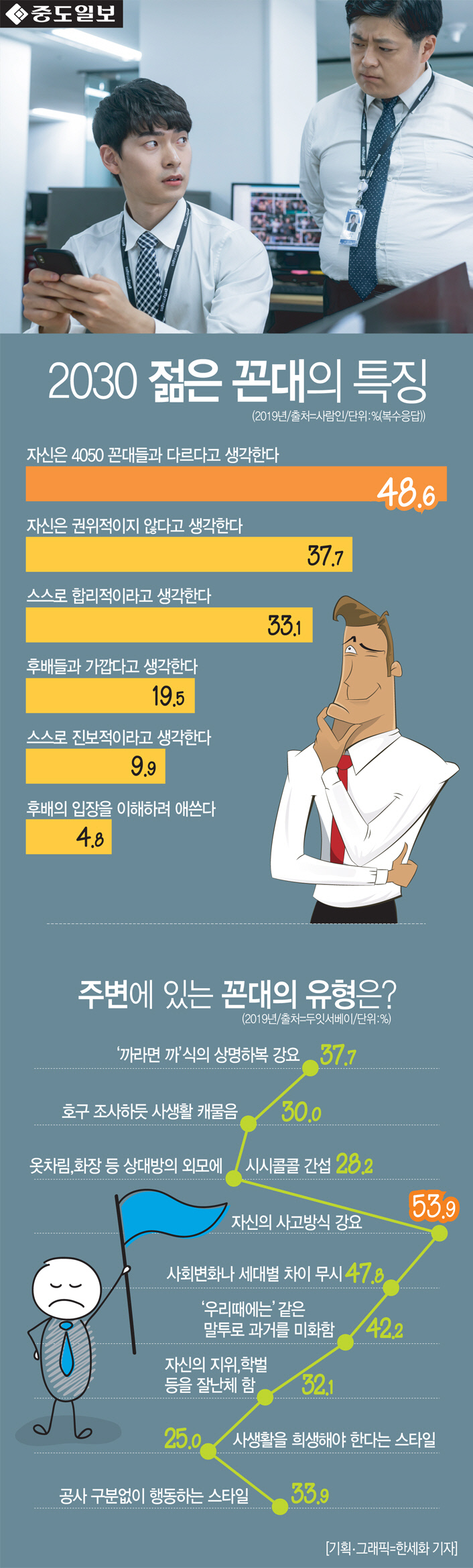 [중도일보] [인포그래픽] 2030 꼰대 절반 '난 4050 꼰대와 달라' 48.6%... 주변의 꼰대 유형은? 본문