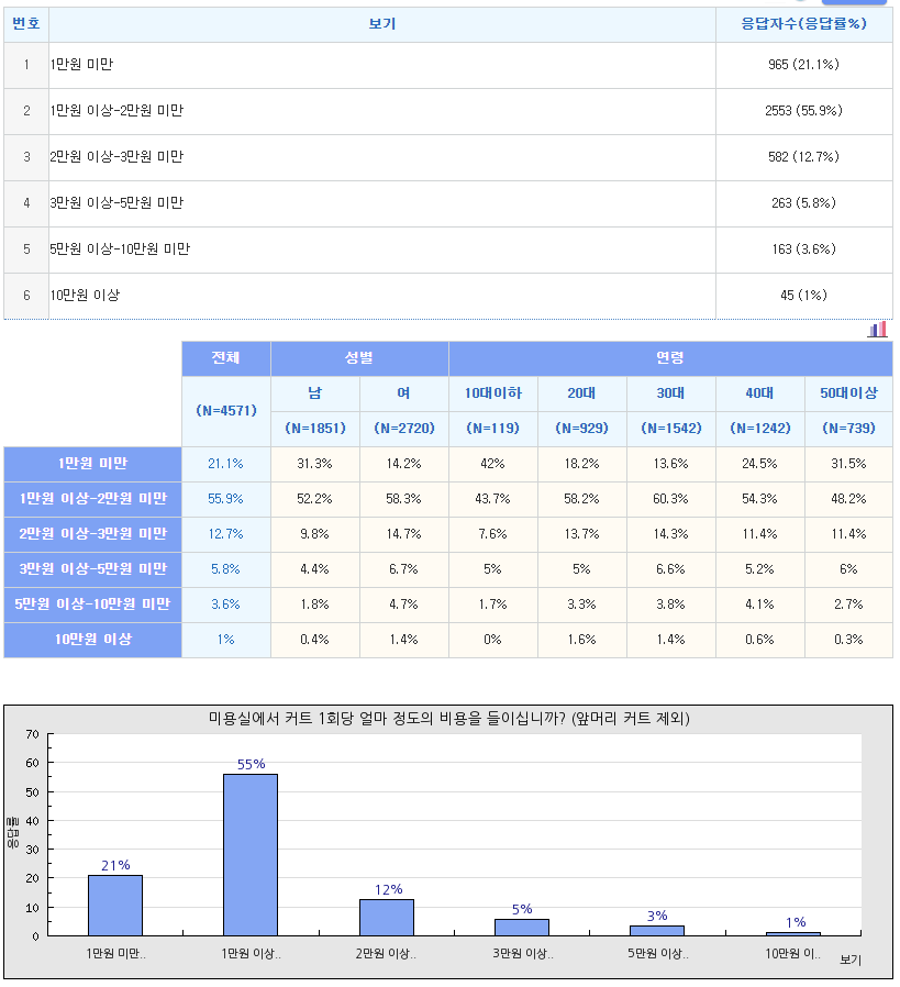 (미용실에서 커트 1회당 얼마 정도의 비용을 들이십니까? (앞머리 커트 제외))