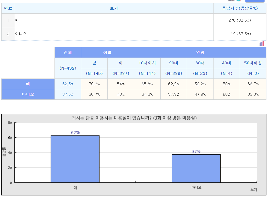 - 10명 중 6-7명은 단골 미용실이 있어(62.5%)