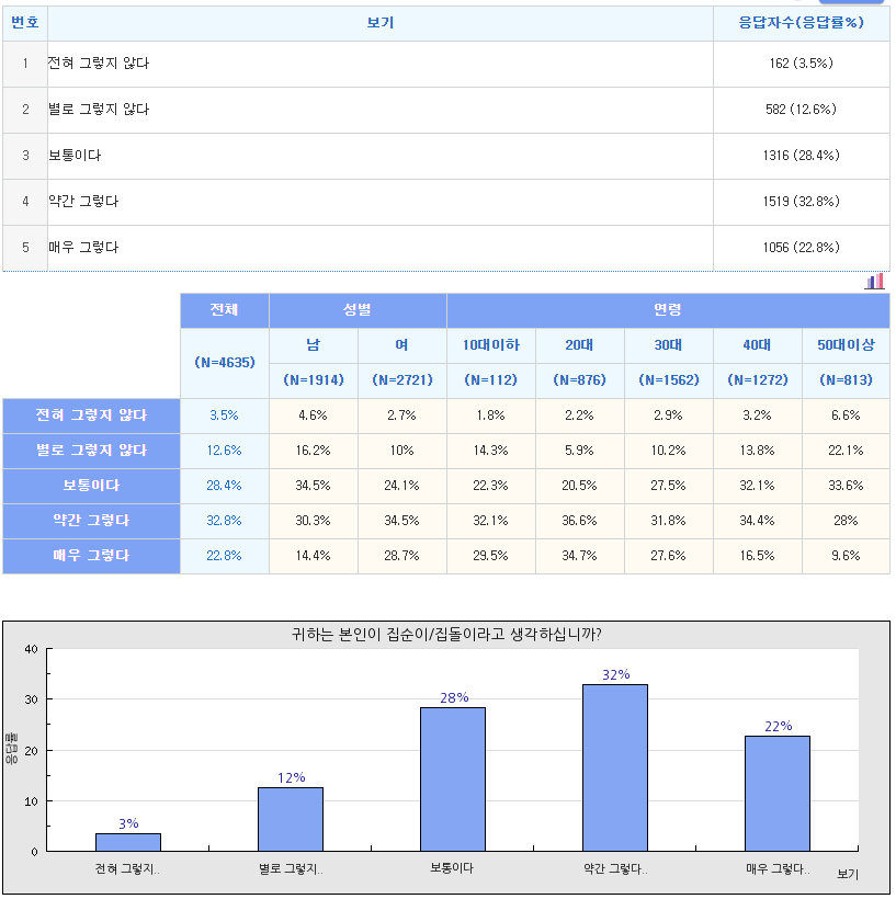 (귀하는 본인이 집순이/집돌이라고 생각하십니까?)