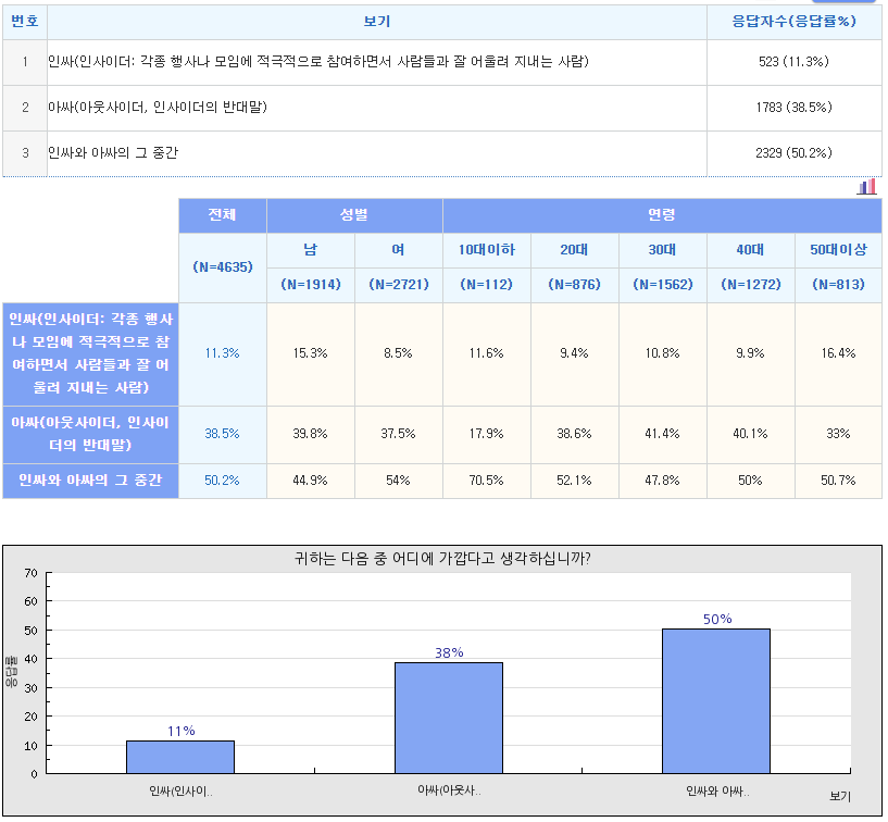 1위) 인싸와 아싸의 그 중간(50.2%)