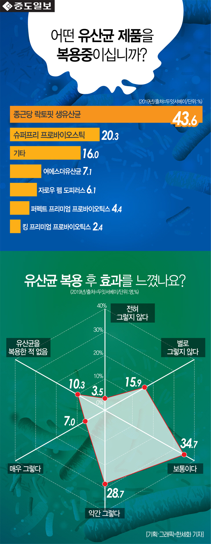 [중도일보][인포그래픽] 어떤 유산균제품을 복용중이신가요?... 복용 후 효과는? 본문