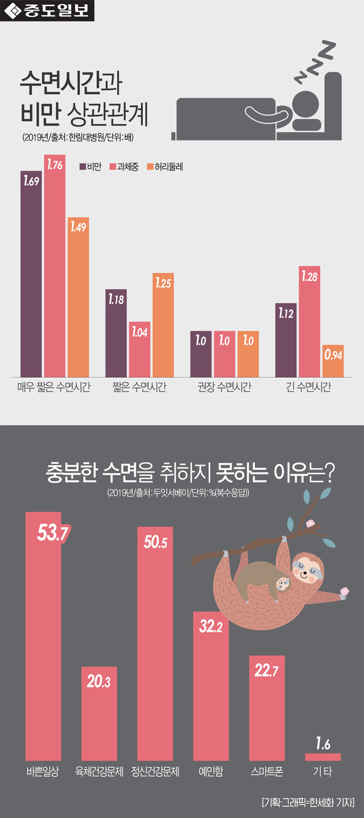 [중도일보] [인포그래픽] 수면 부족하면 비만 확률 60% 증가... 충분한 수면 못하는 이유는? 본문