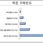 우리나라 국민 10명 가운데 4명, 평소 복권 구매한다 우리나라 국민 10명 가운데 4명 이상이 평소 복권을 구입하는 것으로 조사됐다. 온라인 설문조사 전문기업 두잇서베이(www.dooit.co.kr)가 지난 달 9일부터 일주일간 인터넷과 스마트폰 사용자 3천569명을 대상으로 실시한 ‘복권’에 대한 설문조사 결과로 밝혀졌다. ‘복권을 얼마나 구입하느냐’는 질문에 ‘특별한 일이 생겼을 때 구입한다’는 응답자가 전체의 22.1%를 차지했다. 또 ‘매주 한 번씩 구입한다’는 응답자가 12.4%나 됐고, ‘매일 구입한다’는 응답자도 1%나 됐다. 이들 가운데 48.5%가 ‘그냥 재미로 구입한다’고 대답했으며, 그 다음이 ‘길몽을 꾼 후에’(26.8%)에 복권을 구입 한다고 했으며, 복권이 주는 가장 큰 재미로..