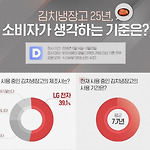 모바일 설문조사 전문기업 두잇서베이 1,378명 설문조사...선택기준은 맛있는 김치 숙성 SR(에스알)타임스 심우진 기자] 모바일 설문조사 전문기업 두잇서베이(대표 최종기)가 김장철을 맞이하여 20대 이상 가정 주부 1,378명을 대상으로 김치냉장고 사용 실태 및 선호도 조사결과를 28일 발표했다. 응답자 중 81.5%가 현재 김치냉장고를 사용하고 있었다. 사용중인 브랜드는 1위 LG전자 (39.1%), 2위 삼성전자 (23.3%), 3위 대유위니아 (19.1%)로 나타났고, 평균 사용기간은 7.7년이였다.선호하는 김치냉장고에 대해서는 “LG디오스 김치톡톡”이 59.1%로 가장 많았으며 “대유위니아 딤채”(26.7%), “삼성 김치플러스”(14.2) 순으로 조사됐다.선호하는 김치냉장고 형태는 무엇인가에 ..