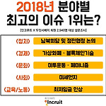 정치분야, 남북회담 및 정전협정 논의(445%), 북미 정상회담(20.4%)경제분야, 가상화폐·블록체인기술(23.8%)과 부동산가격상승(21.9%) 근소한 차교육·노동 분야, 최저임금인상(30.6%), 사립유치원(24.6%) 실업률증가(17.0%) 순【서울=뉴시스】김종민 기자 = 2018년 무술년 한해, 그 가운데에서도 분야별 가장 인상 깊은 이슈는 무엇일까.취업포털 인크루트와 설문조사플랫폼 두잇서베이가 성인 2940명을 대상으로 ‘2018 올해의 이슈’에 대해 정치, 경제, 문화, 사회, 교육ㆍ노동 5개 분야에 대해 공동으로 설문조사를 진행했다. 설문은 포털사이트 및 SNS에서 높은 검색빈도를 각 6개 이슈를 엄선, 종합 및 분야별 이슈를 각 1개씩 선택하게 했다. 먼저 ’정치’ 분야 최고의 이슈에는 ..
