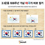 -올바른 태극기 도안 찾기 정답률 59%에 그쳐 [헤럴드경제=정세희 기자] #. “아빠 우리 집은 태극기 안달아?” 서울 영등포구에 사는 공무원 한모(37) 씨는 태극기를 찾는 다섯살짜리 아이의 질문에 깜짝 놀랐다. 태극기를 집에 달았던 기억이 까마득했다. 올해 3.1운동 100주년이라는 뉴스는 많이 봤지만 태극기 달 생각조차 하지 않고 있었다. 뒤늦게 태극기를 구매한 한 씨는 이번 3.1절에는 태극기를 아이와 함께 달 계획이다. 그는 “어렸을 때는 태극기를 직접 그려서라도 달았던 것 같은데 한동안 잊고 있었다. 아이 교육을 위해서라도 삼일절만큼은 태극기를 달아야겠다”고 했다. 1일 3.1운동 100주년을 맞이한 가운데 사람들의 태극기에 대한 관심은 다소 떨어지는 것으로 나타났다. 취업포털 인크루트와 설..