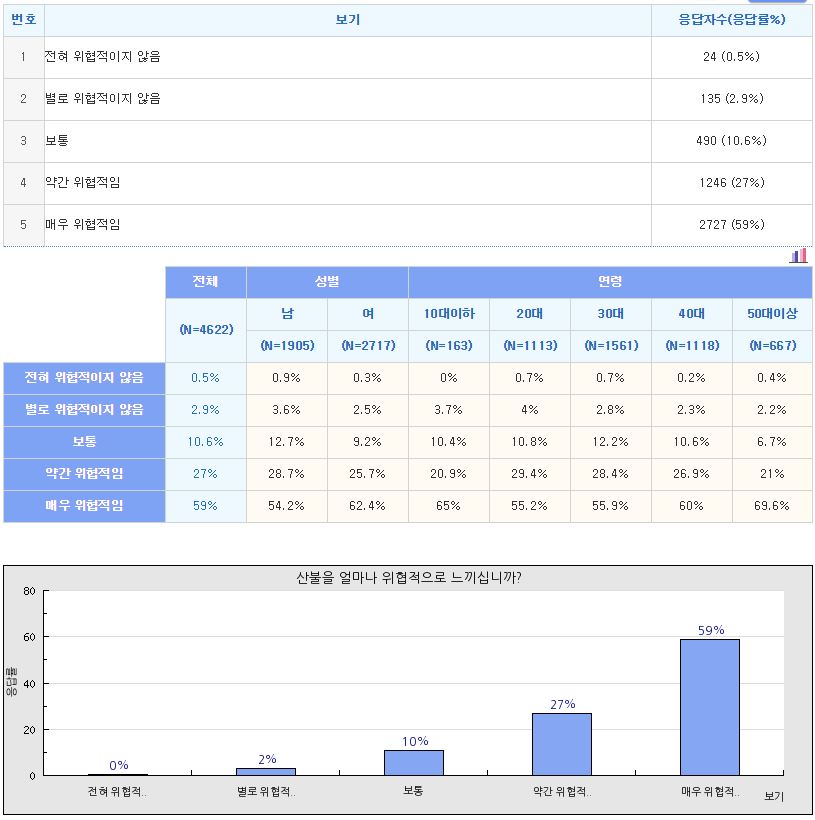 (산불을 얼마나 위협적으로 느끼십니까?)
