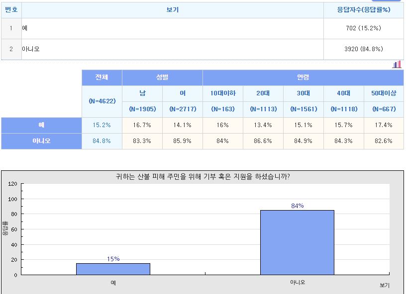 귀하는 산불 피해 주민을 위해 기부 혹은 지원을 하셨습니까?)