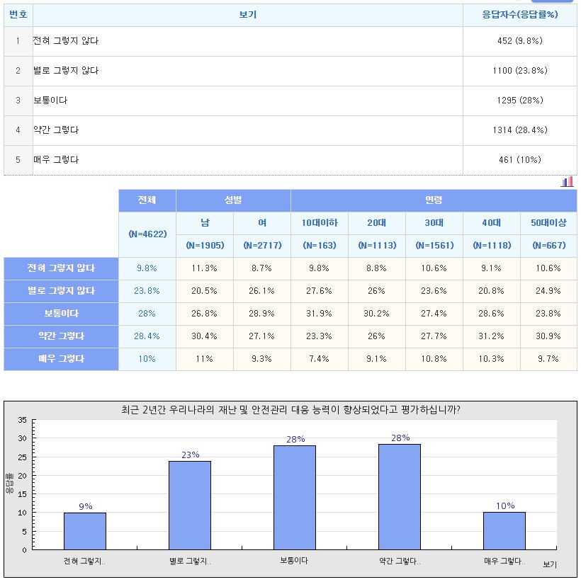 (최근 2년간 우리나라의 재난 및 안전관리 대응 능력이 향상되었다고 평가하십니까?)