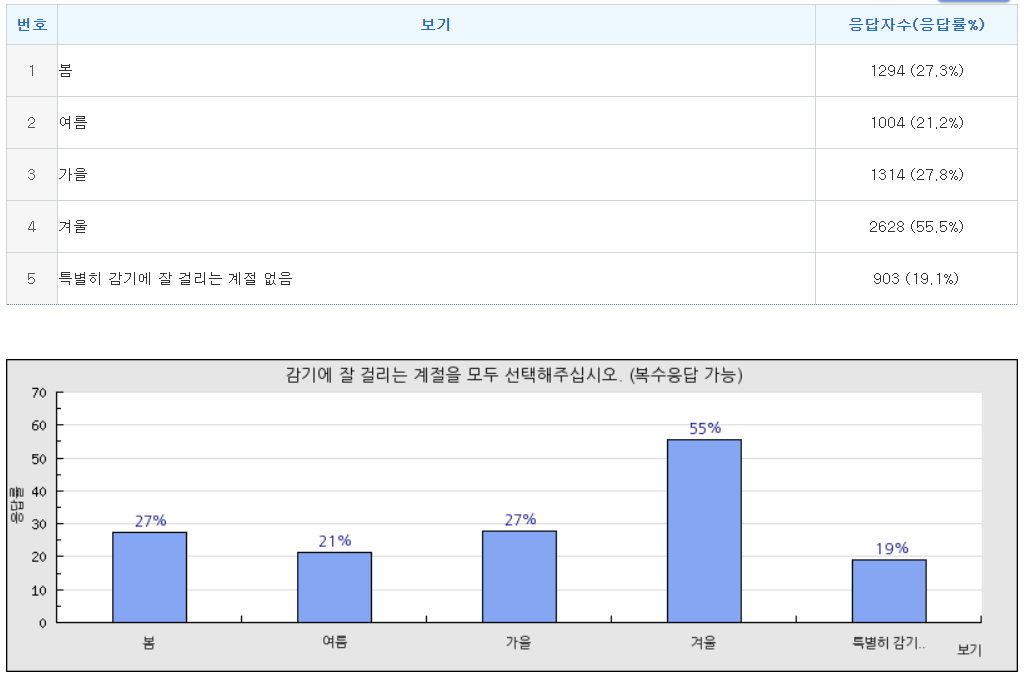 ([복수응답] 감기에 잘 걸리는 계절을 모두 선택해주십시오. (복수응답 가능))